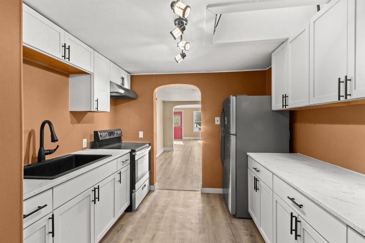 Situated on a prominent corner lot in the heart of Amherst, this spacious 3-bedroom, 1.5-bath home offers a functional layout and numerous updates throughout'making it an excellent opportunity for first-time home buyers. Seller is offering a $5,000 closing cost credit to a qualified buyer, to be applied toward buyer's closing costs and/or prepaid expenses at closing. The main level features a beautifully updated kitchen with abundant cabinetry, modern countertops, and an impressive 5x9 pantry for exceptional storage, along with a convenient half bath with laundry hookups. A generously sized primary bedroom with a walk-in closet is complemented by additional bedrooms and versatile living spaces that easily adapt to guests, a home office, or everyday living, all filled with warm natural light. The oversized 26x34 attached garage provides ample room for multiple vehicles, storage, hobbies, or a workshop. Major improvements?including updated plumbing, electrical, and kitchen finishes?have already been completed, offering peace of mind and making this home truly move-in ready. Step outs