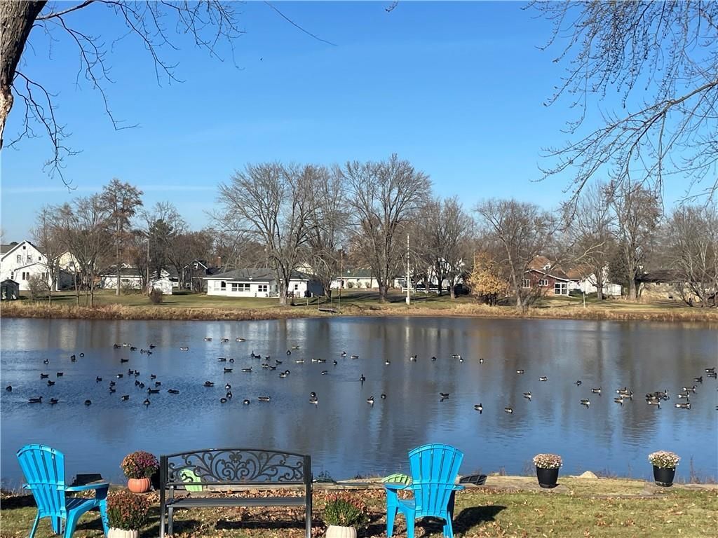 VERY RARE & unique waterfront home on beautiful Lake Martha! Just updated, in and out! Ideal and prime location on lake, and includes extra lot for expansion and LOTS of waterfrontage. Has semi-private recessed cove below with steps & full retaining wall ... perfect for campfires and sunsets, watching the ducks and geese. Just needs your dock! NEWLY RENOVATED with brand new siding, roof, large front porch addition, interior kitchen appliances, floor, countertops/snack bar, all new/newer paint throughout, gorgeous wood floors recently refinished, some new lighting/fixtures, newer main bath, including tiled shower & floor, newer carpet down, etc. So much character and charm, with wide woodwork, hardwood floors, folding french doors, solid wood kitchen cabinets, loads of closets and storage, and nice open layout with TONS of windows for natural light! Interior steps to downstairs, mostly finished, as well as steps directly to outside from storage/furnace room. Cute back sitting deck and detached, smaller garage. This home feels so warm and welcoming ... a true gem. Additional adjoining lot would be great for adding a larger garage or adding a back screened porch, etc. So many options with this home and additional space/frontage. You'll also have a great bonus being very close to Stoddard Park (with brand new playground equipment being put in!), public pool, Cabin in the Pines, the Osseo Golf Club, ball park, and great walking trails over the footbridges. Close to downtown Osseo, and short drive to Hwy 53, Hwy 10, and I-94. Enjoy peace and serenity in your "move-in ready" lake home. (Priced well below the professional appraisal completed in the fall).