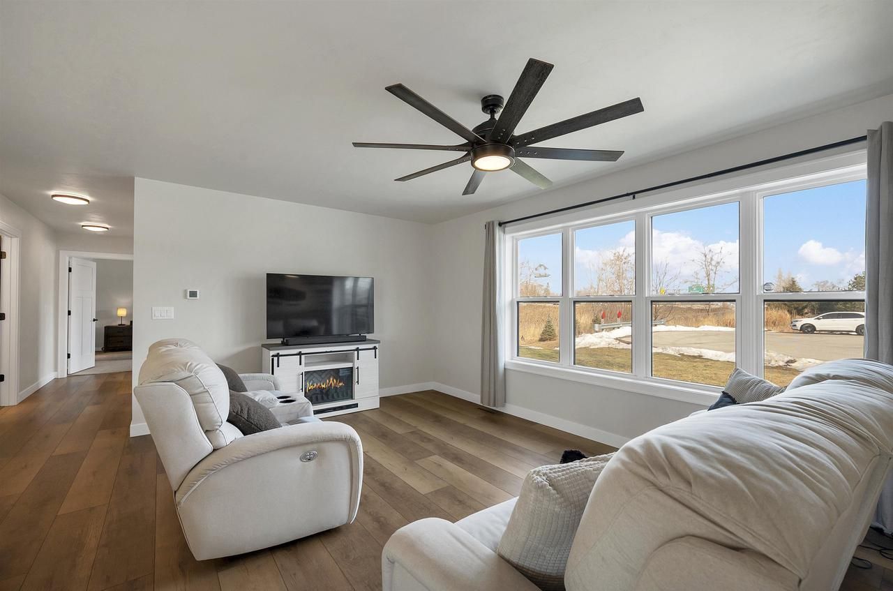 Built in 2023, this ranch offers a layout that simply makes sense. The main level is open and connected, with a large island that anchors the kitchen, seating for gathering, a pantry for storage, and patio doors leading to the deck. The wooded backyard with a creek creates a peaceful setting and privacy year round. The primary suite features a walk in closet and private full bath, while the finished lower level adds a comfortable family room, two additional bedrooms, and another full bath for added flexibility. Zero entry design, thoughtful storage throughout, a 2 stall attached garage, shed, and updated landscaping in 2025 complete the home. Located on a quiet cul de sac with a park right down the street and quick highway access for an easy commute. 48 hr binding acceptance