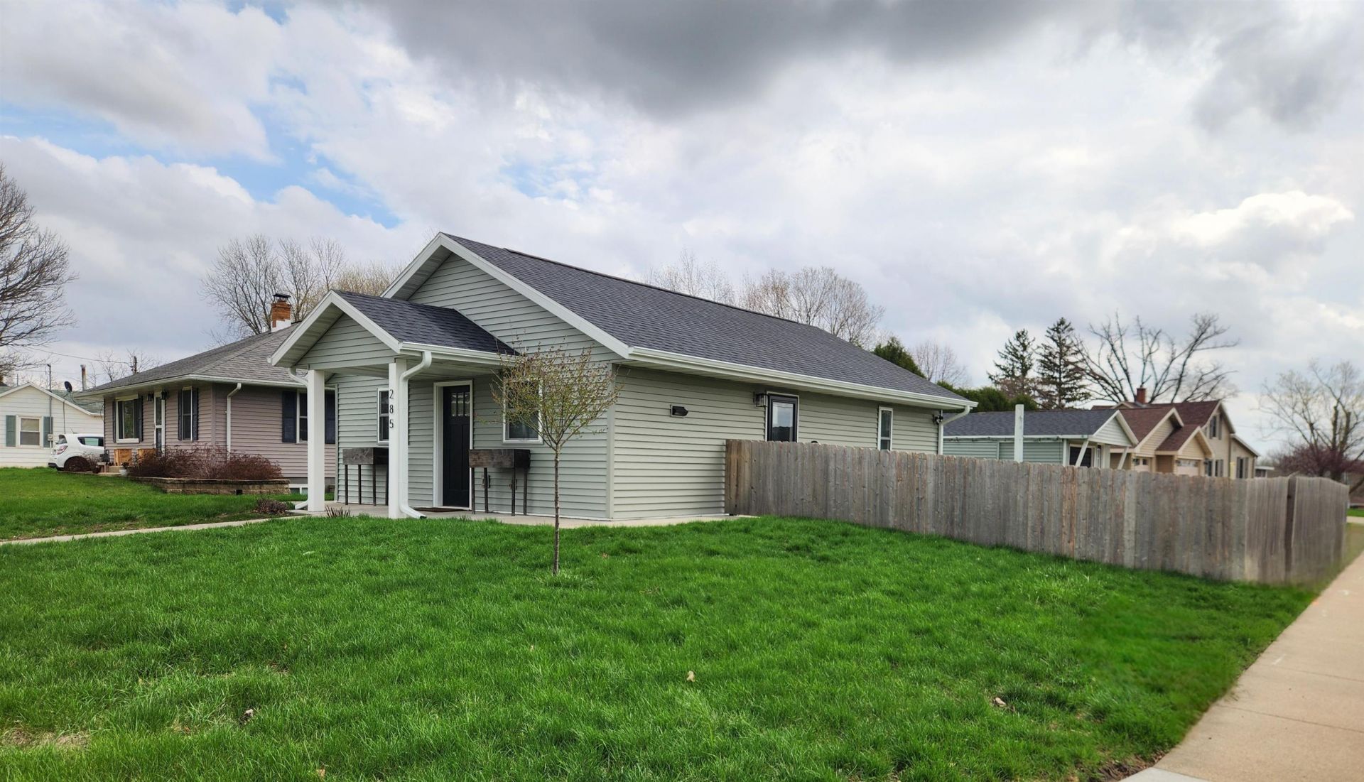 Built in 2020, this 2-bedroom, 1-bath ranch offers the comfort of one-level living with a low-maintenance design and an open layout. The beautiful kitchen with island flows right into the living room?perfect for entertaining or everyday life. Outside, enjoy a fully fenced yard ideal for pets, privacy, and summer get-togethers, plus a 1-car detached garage and oversized driveway for extra parking. Bonus: the home is already plumbed for in-floor heat?just hook it up! Located on a corner lot within walking distance to parks, the pool, and schools. (home sits on a slab- so no basement to worry about)