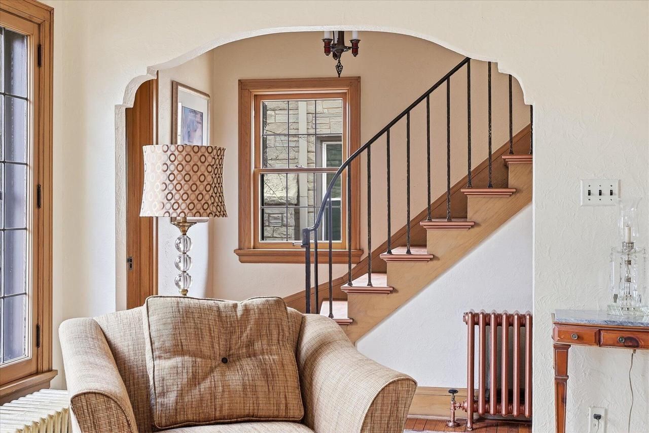Situated on the highly regarded stretch of N 51st Blvd in historic Sunset Heights, this 1933 Tudor blends timeless architecture with classic boulevard presence beneath a mature tree canopy. Known for its strong sense of community, well-maintained homes, and beautifully kept yards, this admired block reflects lasting pride of ownership. With approximately 2,286 sq ft, the home offers 2 bedrooms, 1.5 baths, and preserved period details including crown molding, statement chandeliers, and elegant wrought iron accents. Believed to have been first inhabited by the Brewmaster of Pabst Brewing Company, it carries a unique piece of Milwaukee history. A charming private office, speakeasy-inspired lower level, and landscaped garden retreat complete this rare opportunity on 51st Blvd.