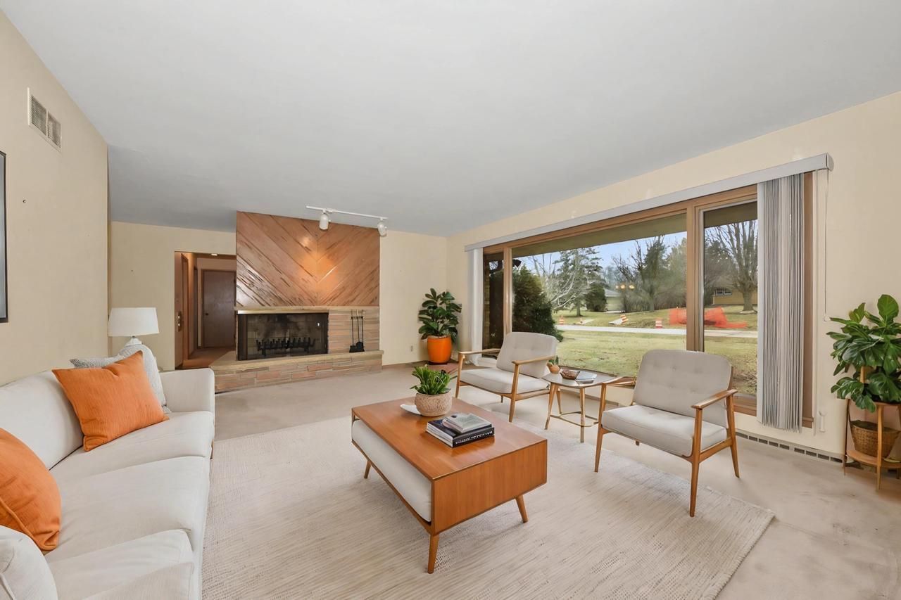Sought-after Brookfield location! Solid brick rambling ranch offers 3 generously sized BDRs & 1.5 BAs, set on a huge yard with a private patio, perfect for relaxing or entertaining. The sun-drenched L-shaped living & dining rms feature a NFP & a wall of windows that floods the space w/ natural light. Eat-in KIT offers tile flooring & ample cabinet space. Inviting FR features HWFs, a second FP, & built-in shelving, w/ direct access to the backyard for easy indoor-outdoor living. Lower is ready for additional living space. Outside, enjoy a charming shed with a garage door, perfect for a playhouse, studio, or she-shed. Plus, the yard has cherry trees, an apple tree & some red currant bushes that come back yearly in the garden. Don't miss your chance to call 4260 N 163rd Street your new home!