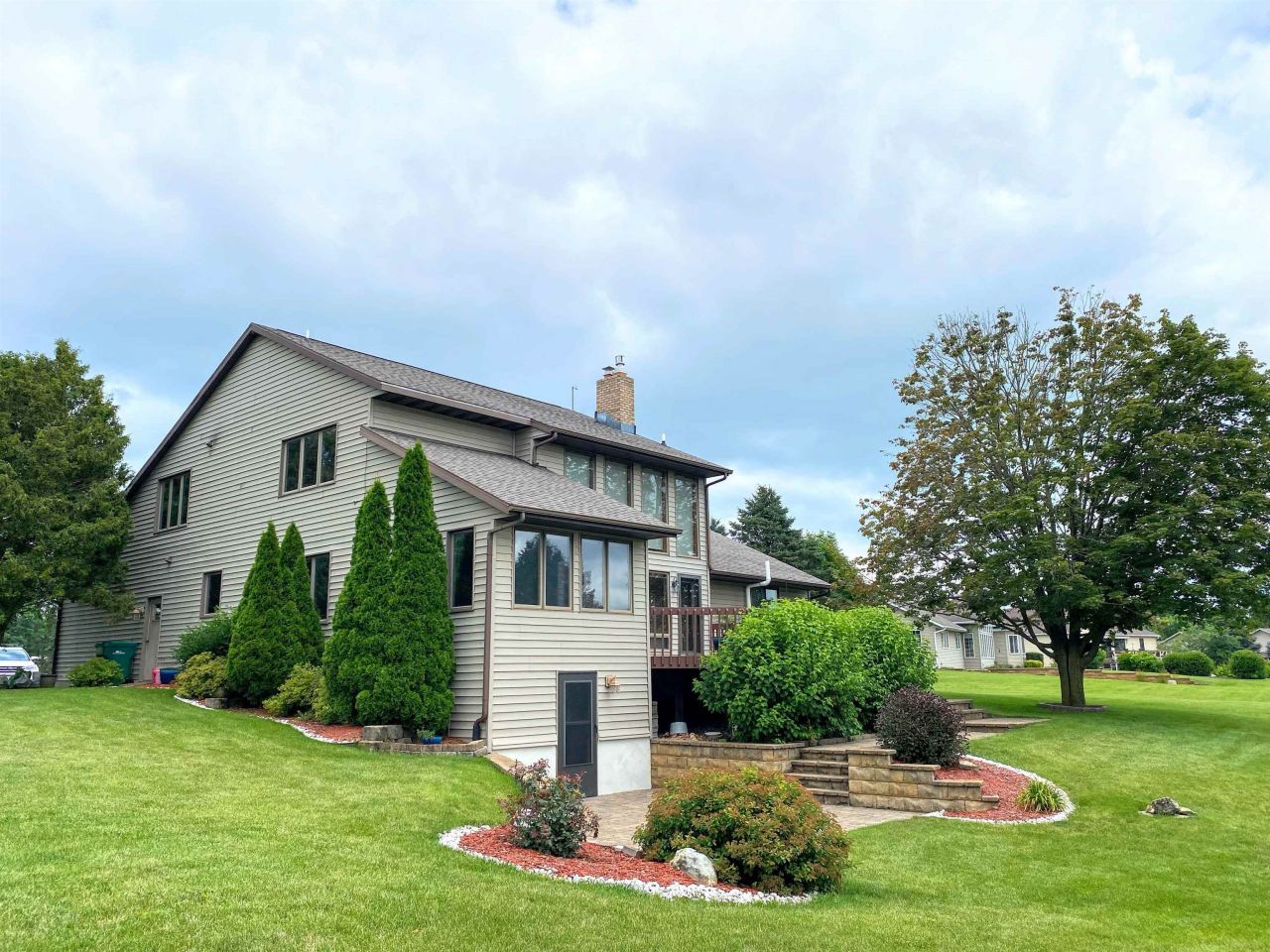 Tucked at the end of a quiet cul-de-sac just outside of Prairie du Chien, this 4-bedroom home sits beautifully along the golf course and is full of space, character, and updates throughout. From the moment you step inside, you'll notice the natural light pouring in around the open staircase and upper bridge, creating a bright, airy feel while you relax near the cozy gas fireplace. The dry basement offers a Beaver system with dri-core sub flooring with waterproof commercial grade LVP. The same beautiful flooring that continues throughout the main living areas and into the private primary suite, complete with a jetted tub for a perfect place to unwind. Updates offer peace of mind, including a tankless water heater (2022), a high-efficiency furnace blower, large capacity central air, and roof (2018). Outside, established perennial landscaping surrounds the home adding color and charm through every season. Large yard with producing plum and apple trees.