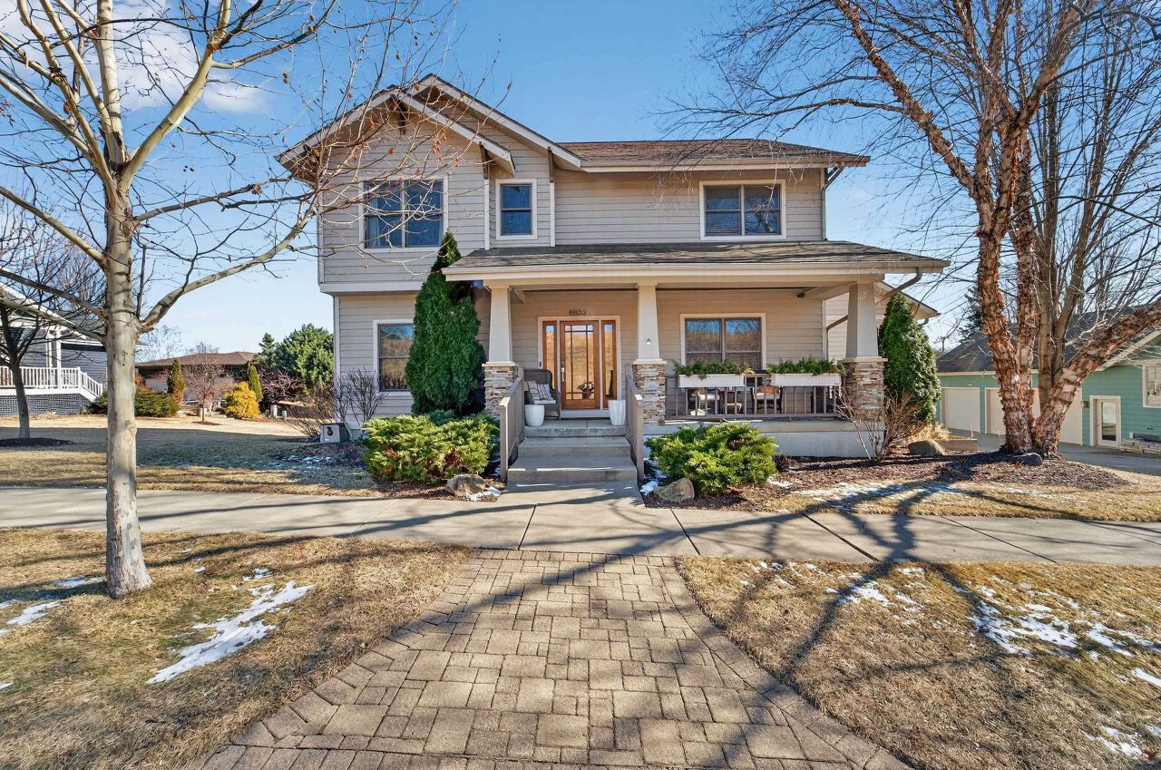 Experience timeless architecture and modern sophistication in this exceptional Middleton Hills home, offering over 4,600 sqft of thoughtfully designed living space across three expansive levels. This 4+ bed/4.5 bath home features two spacious primary suites with walk-in closets, ideal for flexible living. The open kitchen is equipped with high end appliances and flows seamlessly into inviting gathering spaces. The light-filled lower level includes a theater, fireplace, kitchenette, and private guest suite. The front office provides excellent an work-from-home option, plus laundry on two levels. Enjoy rare green space on two sides, a screened porch, and patio for outdoor living. The three-car garage including an EV-ready setup is the cherry on top. Walk to parks, trails, shops, and schools. Furnace (2021), Water Softener (2016), Water Heater (2015), Roof (2014)