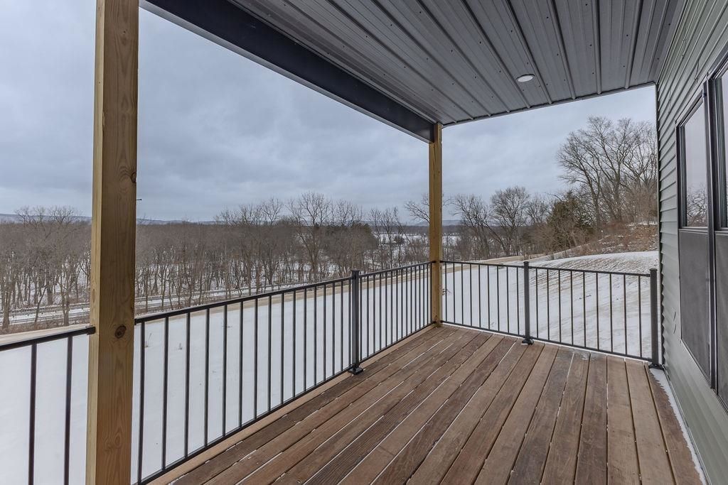 Newly constructed 2-bdr 2-bath home on 1.7 acres, offering modern design and a scenic Mississippi River setting. Located directly across the from Blackhawk Park and the public boat ramp, this property provides convenient access to river recreation while maintaining a private residential feel. The home features an open floor plan with vaulted ceilings that create a bright, spacious interior. The kitchen includes a center island, walk-in pantry, ample cabinetry, and seamless flow into the living and dining areas. The primary bedroom offers a full private bath with walk-in shower and closet. Additional features include a laundry and mud room, covered porch, and a covered deck with Mississippi River views. Exterior amenities include a 2-car attached garage and a 24x40, insulated metal outbuilding with electric, finished concrete floor, and a new 10x8 overhead door. Ideal for storage of your boat, ATVs or other equipment. A rare opportunity to own a brand new home in a desirable location.