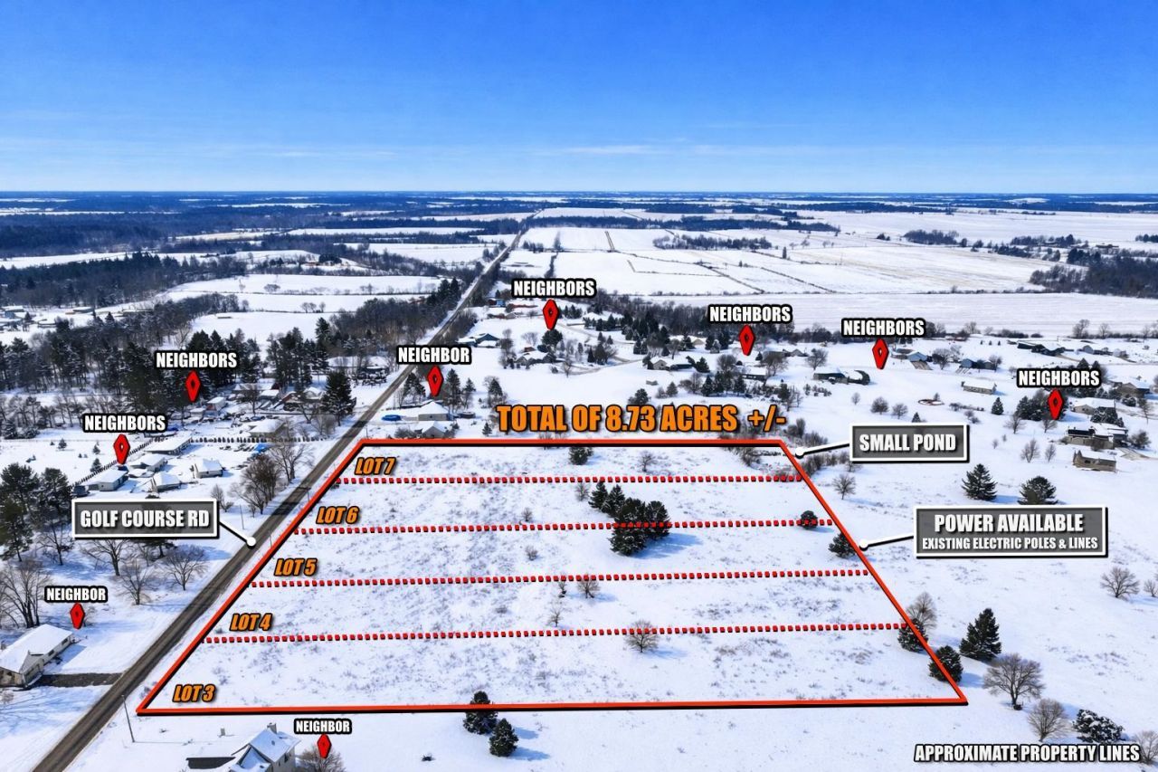 This combined offering includes approximately 8.73 acres across five adjoining parcels in the Golf Course Estates area just outside Brodhead, WI. With direct paved road frontage on Golf Course Road and power available at the street, this property provides flexibility for a custom home, estate-sized build, or multi-lot development opportunity. The land offers open, scenic surroundings with a small pond located toward the rear of one parcel, supporting wildlife and adding natural interest. Buyers have the option to utilize the full acreage together or consider future separation of lots. Convenient access to Highway 11 places downtown Brodhead, dining, shopping, and services just minutes away. Whether you're searching for Brodhead land for sale, Green County acreage, or an investment property in Wisconsin, this rural property offers location, access, and long-term potential. Contact us today to learn more!