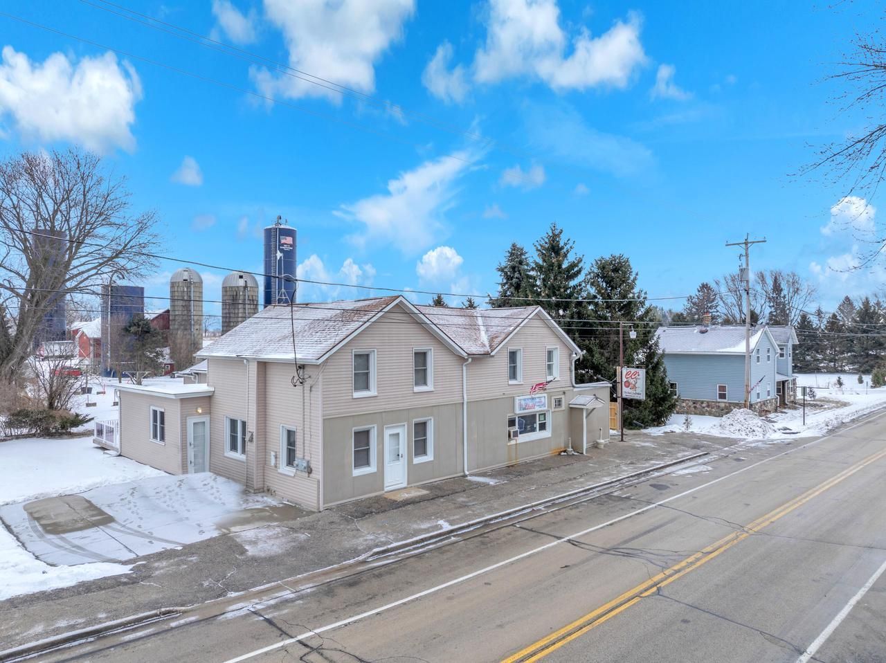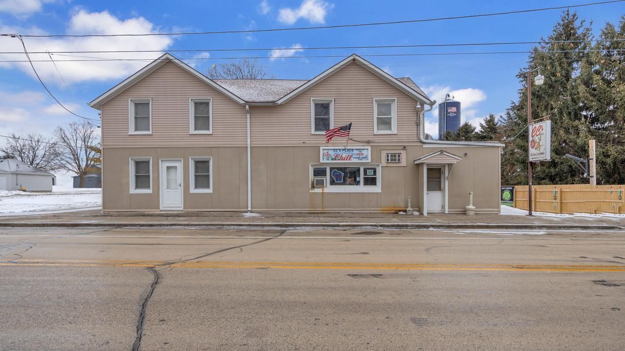 Excellent opportunity in a very desirable location. Nice 2 story 3 bedroom attached home. Updated with newer windows, siding , roof in past 10 years. New deck put on last year. Attached bar and hall has lots of possibilities. Would make a great owner occupied business or rental! Bar is currently on a month to month lease with long term tenant, all bar related items and business IS NOT included in sale. Bar room 34x33 and hall 30x53. Plus game room area, House will be vacant at closing. Buyer responsible for any municipal, county health dept/state requirements, 3 zone heat. Modine in hall on separate meter. 2 electric meters. All measurements are approx. Buyer to verify room sizes. 2 parcels