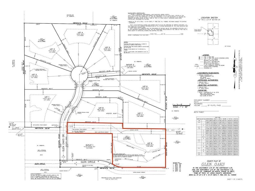 Introducing Glen Oaks, the newest development in Troy Township?where privacy, nature, and space come together in a truly special setting. Nestled among mature trees and gently rolling landscape, Glen Oaks offers a rare opportunity to build your dream home on expansive homesites ranging from 2.5 to over 5 acres. These beautiful lots are thoughtfully positioned to provide a tucked-away feel while still offering convenient access to nearby amenities. Whether you envision a modern farmhouse, a custom rambler, or a private estate retreat, Glen Oaks gives you the space and flexibility to bring your vision to life. Please note that lot outlines are approximate. Survey markers will be placed to clearly identify boundaries. The current driveway serving the existing home will be removed once the new road is constructed this spring.