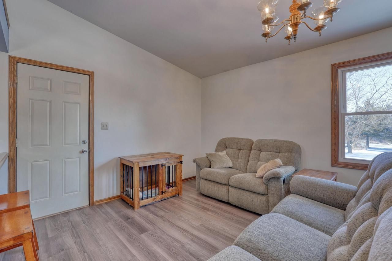 Situated on a beautiful cul de sac lot is your new home! This well cared for Bi-Level has some nice updates. Interior freshly painted, Laminate floors throughout the Kitchen and Dining/Living Room. Stainless Refrigerator and Range are 3 years old and have peace of mind with a new roof and gutters installed in 2025. The Kitchen, with snack bar and pantry overlooks a spacious Dining/Living Room area with vaulted ceiling. All three bedrooms are very spacious and offer ample closet space. In the Lower Level you can enjoy movie nights with the included projector and patio doors to walk out and enjoy the 1.26 acre lot. There's also a nicely insulated dog kennel added to the back of the garage and two storage sheds. Located in the Mukwonago school district with low Town of Eagle taxes. Hurry!